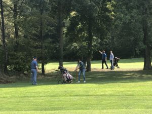 Das Wetter war traumhaft und so konnten die 19 Golfinteressierten, die teilweise das erste Mal einen Golfschläger in der Hand hatten, einen besonders positiven Eindruck von unserem schönen Sport bekommen. Unsere Mitglieder gaben dann auch alles bei der gemeinsamen 6-Loch-Runde, so dass es nach der Runde viele glückliche, aber auch sehr erschöpfte Gesichter gab. Es war auch ein sportliches Programm zu absolvieren: in zwei Gruppen aufgeteilt wurde geputtet und auf der Range die langen Bälle geübt. Nach zwei Stunden intensivem Training gab es einen kleinen Mittagsimbiss und danach ging es auf den Platz.