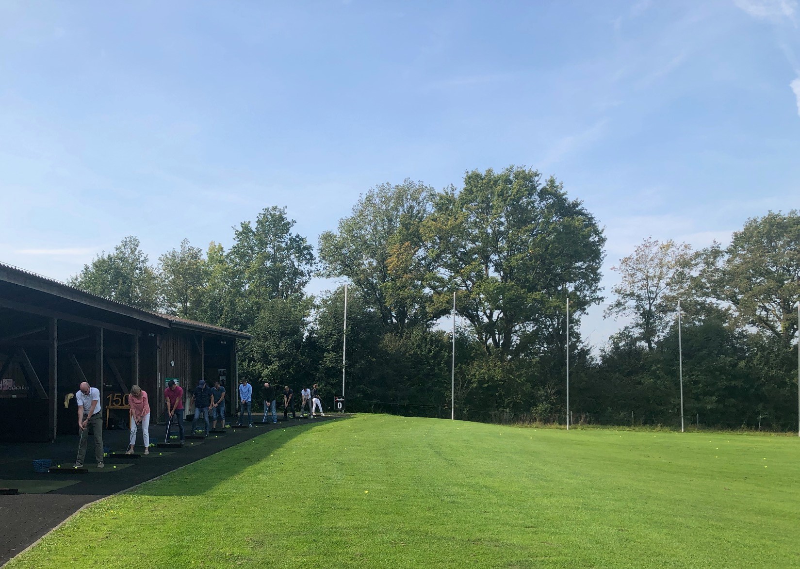 Ein Teil der Gruppe beim Training auf der Driving Range mit Pro Stephen Liddell