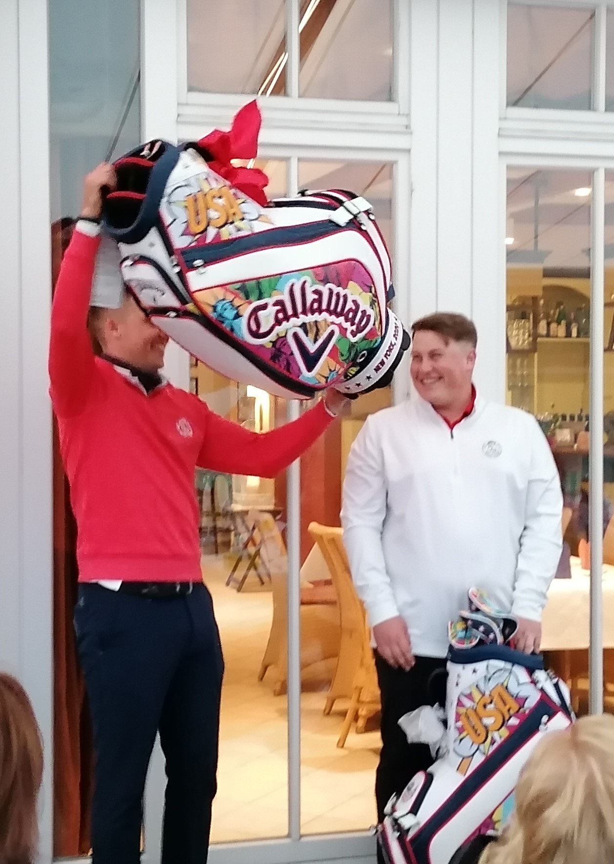 Als besonders großzügig wurden die tollen Ehrenpreise empfunden, die Christoph Jordan mit Unterstützung des Proshops von Stephen Liddell sponserte: zum Beispiel limitierte Golfbags von Callaway, Putter der Marke Scotty Cameron und Wedges von Callaway. Zwei der vier Golfbags konnten die Bruttosieger Jost Pollmeier und Jan-Hendrik Topmöller in Empfang nehmen, die insgesamt 34 Bruttopunkte sammelten. Marcel und Michaela Braunshausen erspielten sich 51 Nettopunkte für ihren Netto-Gesamtsieg und freuten sich über die neuen Scotty-Cameron-Putter. In der Nettoklasse A bis Handicap 23 lagen Karin Altemöller und Ralf Dahlhoff mit 46 Nettopunkten knapp vor Elena Schroer und Till Barz mit ebenfalls 46 NP. Auf Platz drei Michael Lange und Anne-Kathrin Krause mit 44 NP. Birgit und Wilhelm Linnenbank konnten den Sieg mit 45 NP in der Klasse B erspielen. Auf den Plätzen folgten Manuela und Mario Beermann mit 42 NP vor Regina Meier-Leifeld und Brigitte Wigglinghoff mit 40 NP. Nach einem leckeren Essen vom Grill für jeden Geschmack, wurde noch in fröhlicher Atmosphäre, natürlich unter Einhaltung der Coronarichtlinien, zusammengesessen.