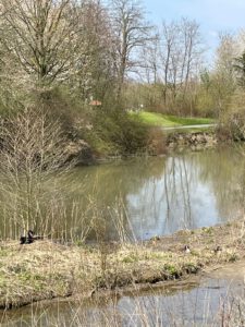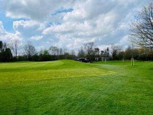 Mittlerweile drei neue Bäume sind nun zwischen dem Abschlag der 2 und dem Grün der 9 gepflanzt. Und auch das Vorgrün ist nach der aufwändigen Trockenlegung 2020 nun so angewachsen, dass der schützende Zaun entfernet ist.