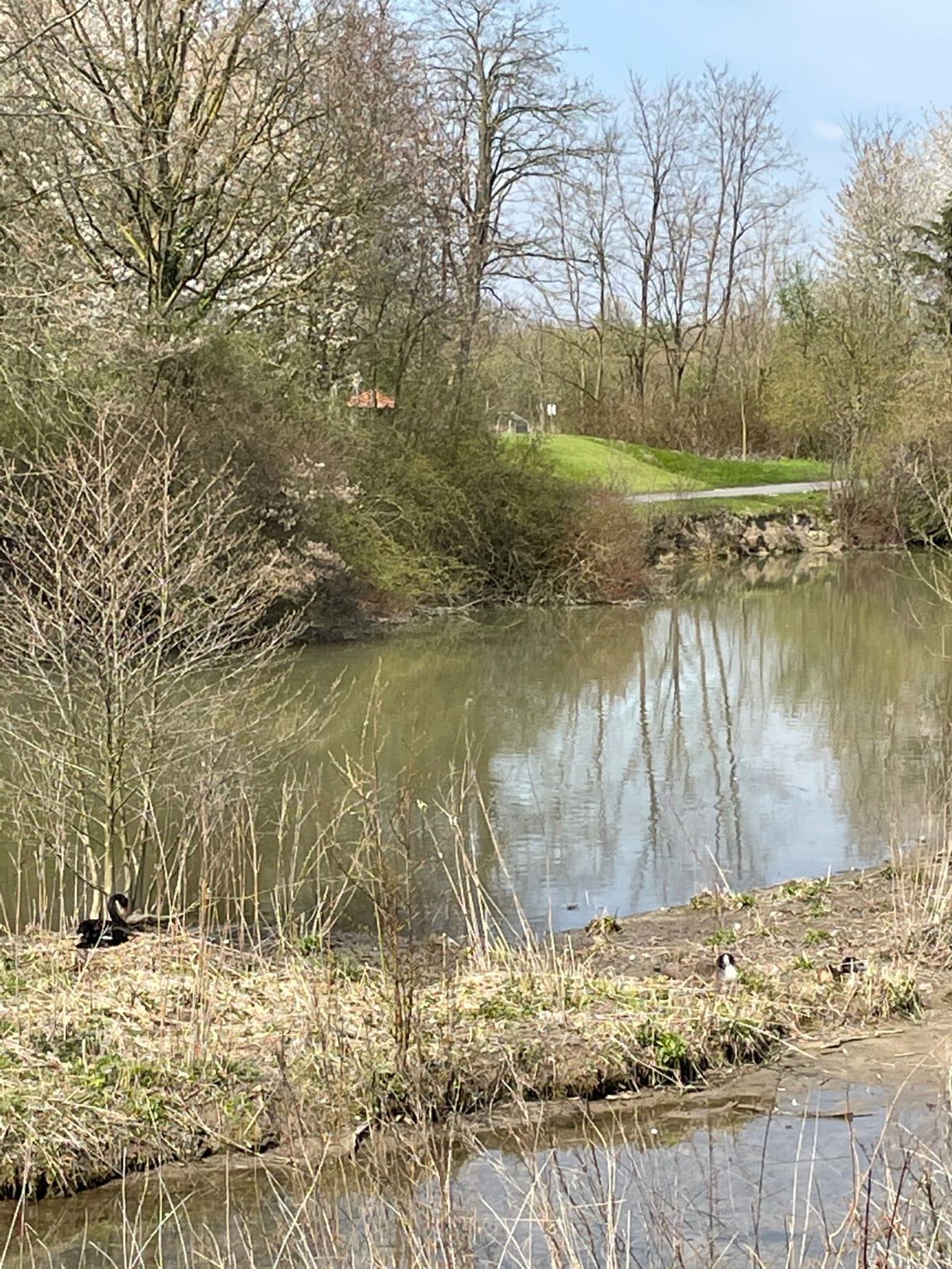 Ein schwarzer Schwan brütet auf dem Mühlenteich! In unmittelbarer Nähe zum Nest der Kanadagans hat sie Quartier bezogen. Drücken wir die Daumen für den Schwanen-Nachwuchs.