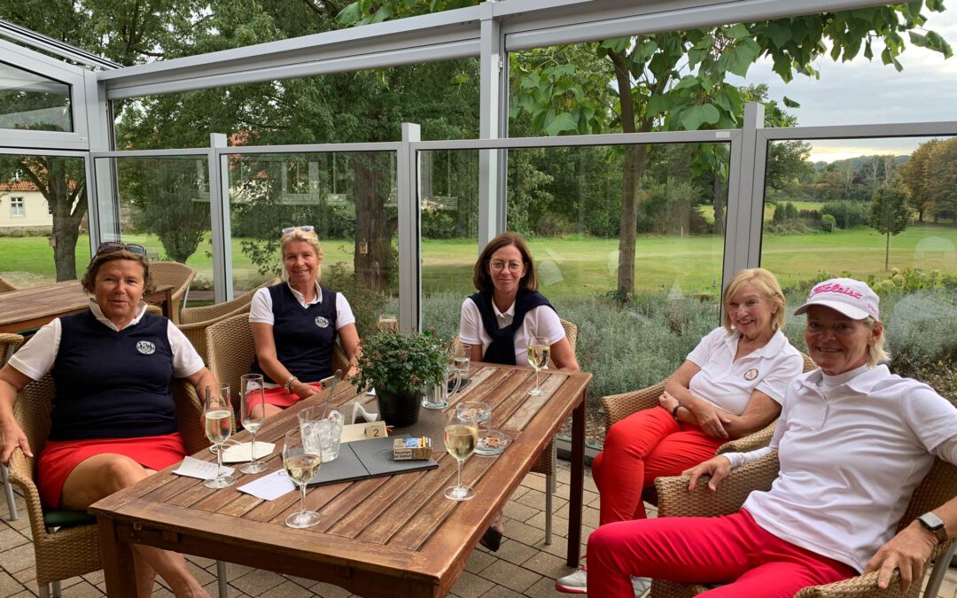 Glückliche Gesichter bei der AK 50 Mannschaft Samstag letzter Woche bei dem Saisonabschluss im GC Schloss Vornholz. Die Platzverhältnisse waren hervorragend, so dass einem Heimvorteil und somit dem Tagessieg nichts mehr im Wege stand! Die Freude darüber war groß, da die Saison insgesamt krankheitsbedingt und ohne konstantes Spiel verlief! Coronabedingt musste das Training ausfallen! Hoffen wir, dass im nächsten Jahr, auch durch einige neue Spielerinnen, das Gesamtergebnis wieder besser ausfällt! Mein Dank gilt allen Spielerinnen, die durch spontane Zusage unsere Mannschaft unterstützt haben in ganz dringenden Fällen: Marlies Bußmann, Anna Opitz und Ulla Lamche! Danke auch an unsere Gastronomie, das gesamte Team der Greenkeeper und an das Trainerteam!
