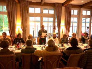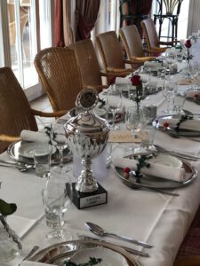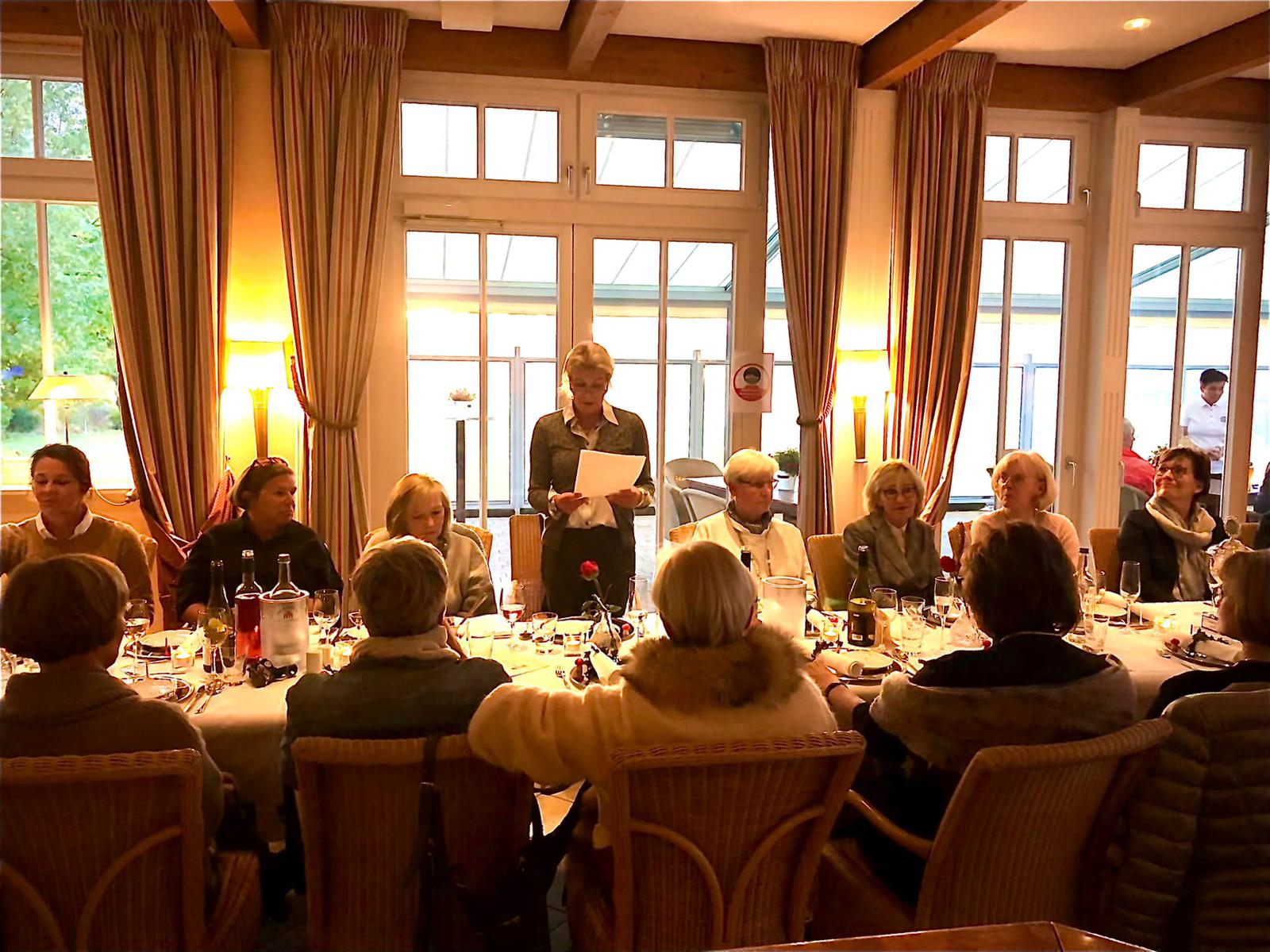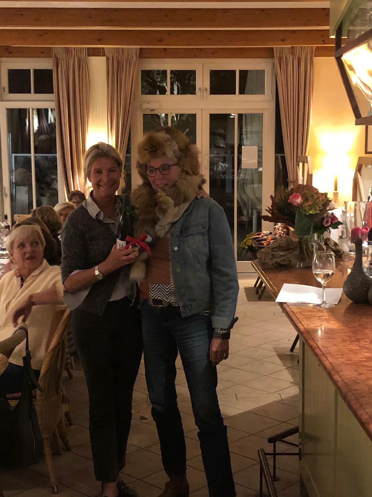 An der schön gedeckten langen Tafel fanden sich dann abends insgesamt 31 Damen ein, um die Saison gemeinsam ausklingen zu lassen. Neue Füchsin nach erfolgreichem Spiel wurde Marlies Bussmann. Geehrte wurde an diesem Abend mit dem gravierten Wanderpokal „Ladies-Cup“ zudem Regina Meier-Leifeld, die über die Saison in spannenden KO-Runden und auch in der Finalrunde gegen ihre Herausforderin Tanja Kalisch die Oberhand behielt. Gewählt wurde an diesem Abend ebenfalls: erneut einstimmig und unter großem Applaus der anwesenden Damen wurden Ladiescaptain Stefany vom Berg und Kassenwartin Hildegard Hödl wiedergewählt. Herzlichen Glückwunsch!