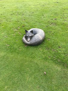 Bei der traditionellen Fuchsjagd zum Saisonabschluss hatten sich 22 Damen angemeldet, die der letzjährigen Turniersiegerin und nun zu jagender „Füchsin“ Ulla Lamché neun Bahnen folgten. Wolfgang Lamché verlieh der diesjährigen Jagd mit aufgestellten Bronzeskulpturen ein besonderes Flair: an Bahn 1 war es der startende, an Bahn neun der ruhende Fuchs zu entdecken.