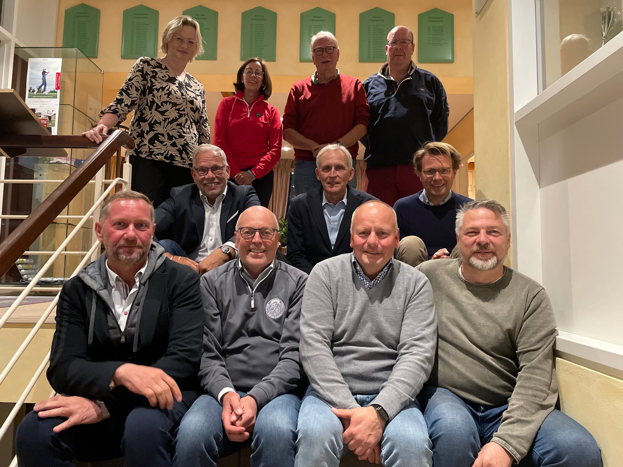obere Reihe von links nach rechts: Schatzmeisterin Stefanie Schnusenberg-Besselmann, Schriftführerin Sabine Haupt, Beisitzer Dr.Dieterich Prüße, Platzwart Christoph Jordan, mittlere Reihe von links nach rechts: Spielührer Martin Hummels, Beisitzer Karl Balhorn und Nikolaus von Bose, unter Reihe von links nach rechts: Vizepräsidenten Michael Lange und Reiner Schaefers, Präsident Willi Linnenbank, Jugendwart Markus Adomat