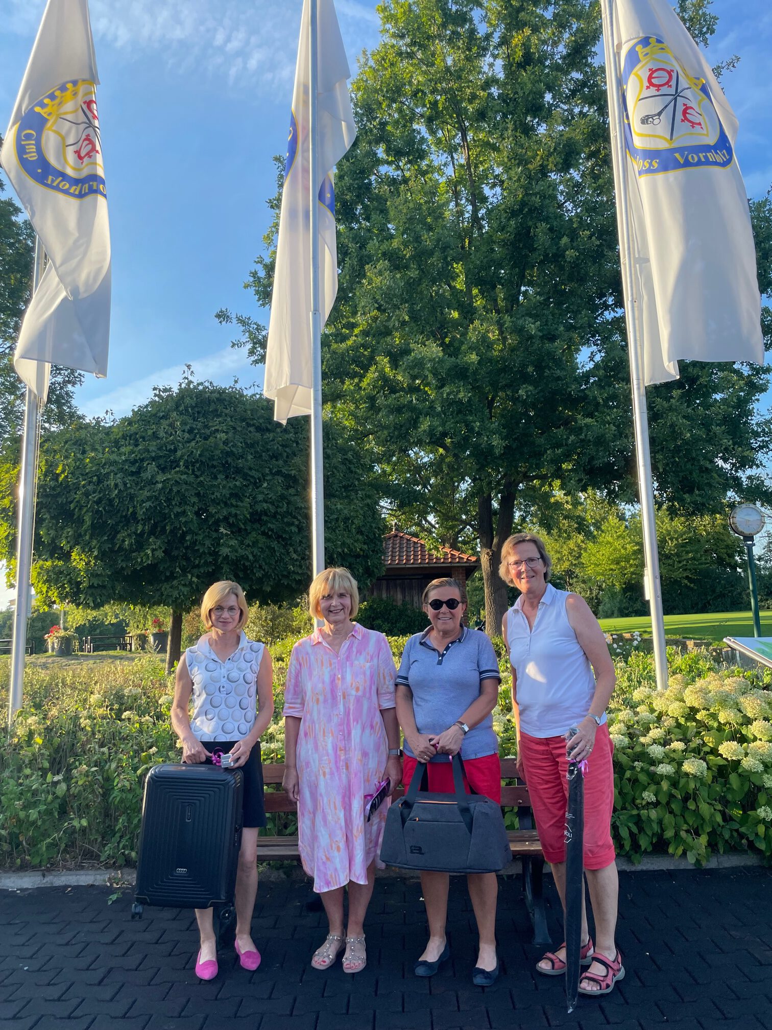 Auf Einladung von Hannelore Weber-Michels vom Autohaus Weber in Ahlen und Beckum wurde der Audi Ladies Cup 2022 im Golfclub Schloss Vornholz ausgetragen. An sechs Turniertagen innerhalb der Saison konnten die Damen am Ladies-Day Nettopunkte auf der 18-Loch-Runde sammeln. Am ersten Dienstag im September war es dann soweit: die Jahressiegerinnen wurden ermittelt. Dafür wurden die drei besten Ergebnisse der Saison gewertet. Mit unglaublichen 122 Nettopunkten aus drei Turnieren konnte Regina Meier-Leifeld den Jahrespreis uneinholbar für sich entscheiden. Hannelore Weber-Michels überreicht ihr dazu einen Samsonite-Reisekoffer. Auf punktgleiche 111 Nettopunkte kamen die beiden Zweitplatzieren: Andrea Geiger und Brigitte Hegselmann, die sich über einen hochwertigen Golfschirm und eine Tasche freuen konnten. Herzlichen Dank an Hannelore Weber-Michels die diese Wertungsprüfungen, jeweils verbunden mit schönen Nettopreisen an allen Wertungstagen, in den Golfclub Schloss Vornholz gebracht hat! Regina Meier-Leifeld überreichte ein Dankeschön in Vertretung für Stefany Vom Berg.