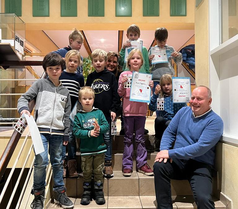 Insgesamt neun Bambinis haben unter Anleitung unserer Proette Iris Wewer das bronzene Golfabzeichen erworben. Herzlichen Glückwunsch! Im Rahmen einer kleinen Feierstunde gab es die Urkunde und ein vom Nikolaus hinterlassenes Geschenk aus den Händen unseres Präsidenten Willi Linnenbank. Der weiteren Golfkarriere steht nun nichts mehr im Weg, zumal die Bambinis bereits erfolgreich ihr erstes Turnier in diesem Jahr absolviert haben. Weiter so!