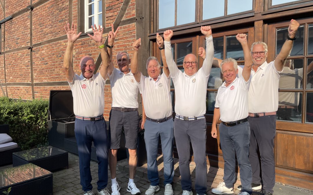 Die Herrenmannschaft AK 65 hatte ihren letzten Spieltag beim GC Wasserschloss Westerwinkel. Sehr schnelle Grüns und ein mitunter starker Wind konnte die Mannschaft von ihrem Weg in die dritte Liga nicht abbringen. Mit einer geschlossenen Mannschaftsleistung holte sie den Tagessieg und sicherte sich mit 30 Punkten souverän den Aufstieg in die dritte Liga. Über die gesamte Saison haben für die Mannschaft Karl Uphus, Martin Hummels, Rudi May, Walter Bußmann, Walter Haver, Reiner Schaefers, Karl Balhorn, Jochen Klein und Heinz Uekötter gespielt. Wir gratulieren zum Aufstieg und wünschen der Mannschaft viel Erfolg in Liga 3!