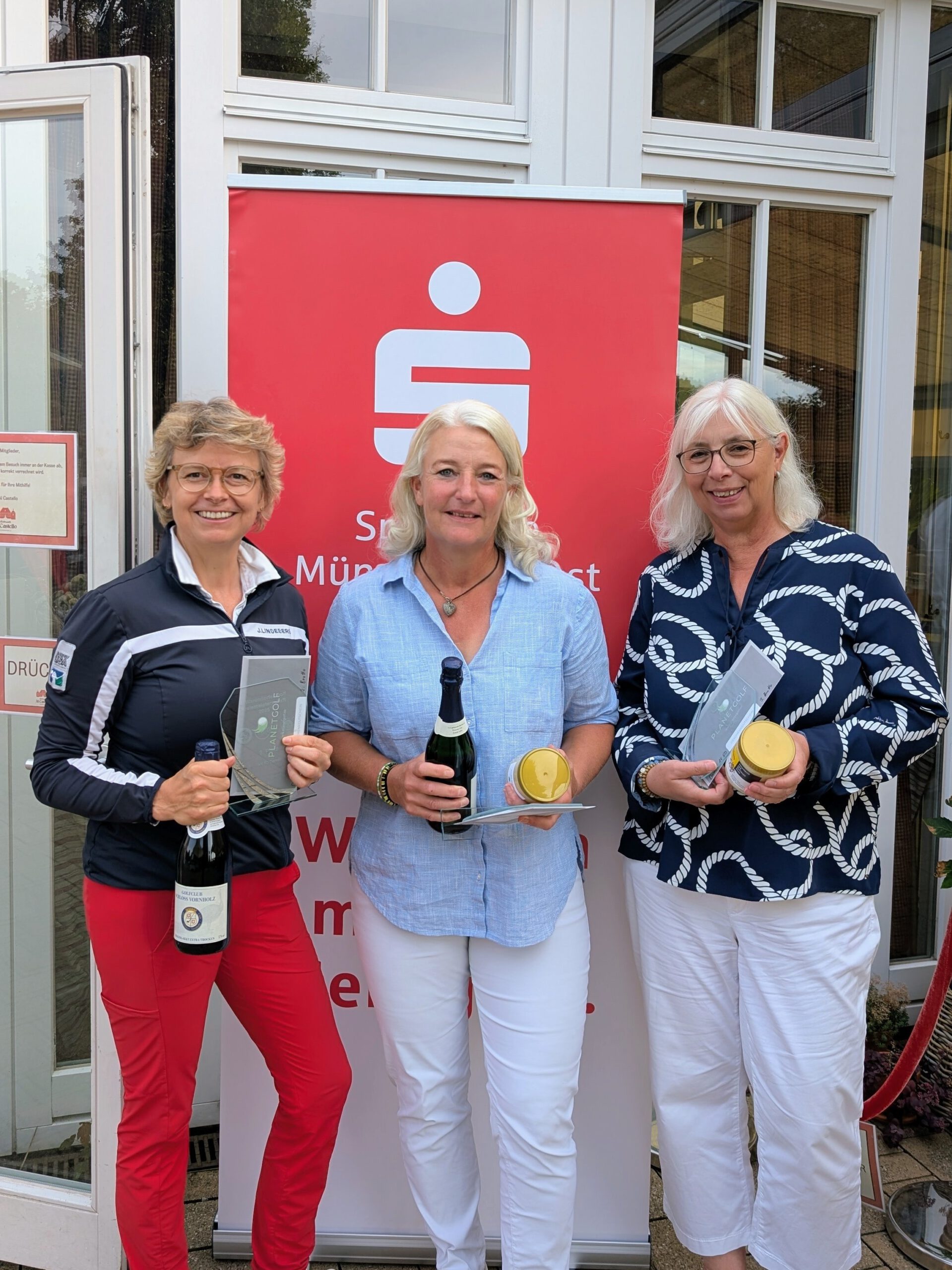 Siegerinnen Damen AK50: 2. Platz Judith Schaefers (GC Schloss Vornholz), 1. Platz Stephanie Jansen (GC Brückhausen), 3. Platz Ingeborg Schmeddinghoff (GC Brückhausen)