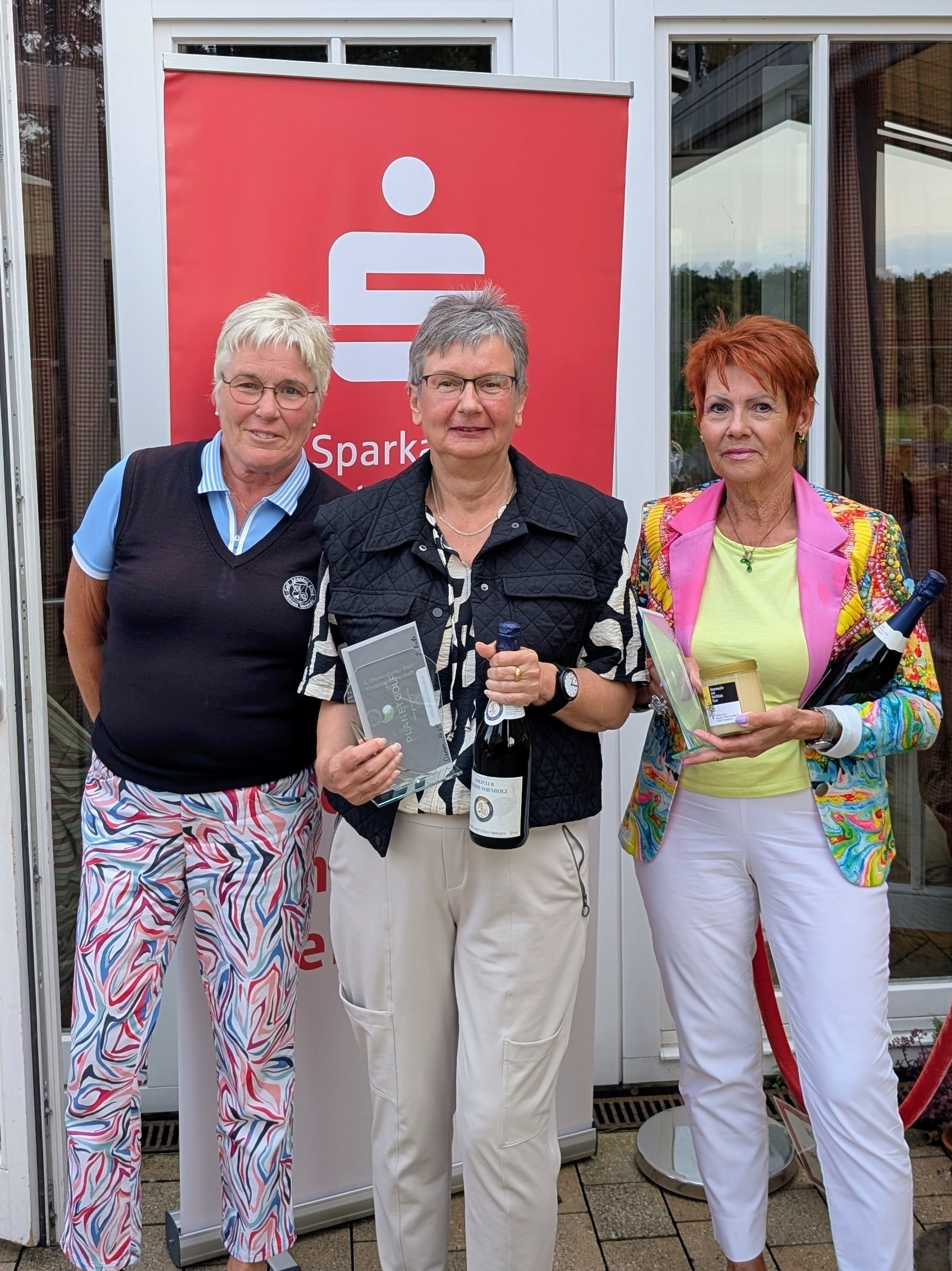 Siegerinnen Damen AK65: 3. Marie-Luise Bußmann (GC Schloss Vornholz), 1. Platz Ingeborg Brisam (GC Brückhausen), 2. Platz Regina Ehmann (GC Brückhausen)