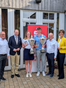 Ein besonderer Höhepunkt der Veranstaltung war der Besuch von Landrat Dr. Olaf Gericke, der in seiner Ansprache die gelungene Zusammenarbeit der Golfclubs im Kreis Warendorf hervorhob und die Bedeutung des Turniers für das Miteinander in der Region betonte. Dr. Gerhike übernahm zudem persönlich die Überreichung der Kreismeisterpokale an die Titelträgerinnen und Titelträger. Ein großer Dank gilt auch den engagierten Sponsoren: Die Sparkasse Münsterland-Ost (vertreten durch Frau Pieper), PlanetGolf, Poggel Polstermöbel und AutoWeber trugen wesentlich dazu bei, die Meisterschaft in diesem Rahmen möglich zu machen.